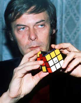 Já agora, acrescento que o Cubo Mágico foi baptizado como Rubik's Cube por uma empresa americana que o comercializou nos anos 80. Foi inventado pelo húngaro Erno Rubik (nascido em Julho de 1944, em Budapeste), quando tinha trinta anos, graças a um dilema de geometria tridimensional e patenteou-o um ano depois. O sucesso foi tal que na década de 80 cerca de um quinto da humanidade já tinha jogado com o cubo, sabendo-se que há 43 quintiliões de combinações possíveis para o resolver. O recorde mundial de rapidez pertence ao holandês Erik Akkersdijk, que em 2008 conseguiu resolver o cubo em apenas 7,08 segundos. Já foram vendidos 900 milhões em todo o mundo, sendo um dos quebra-cabeças que mais fascinam miúdos e graúdos.